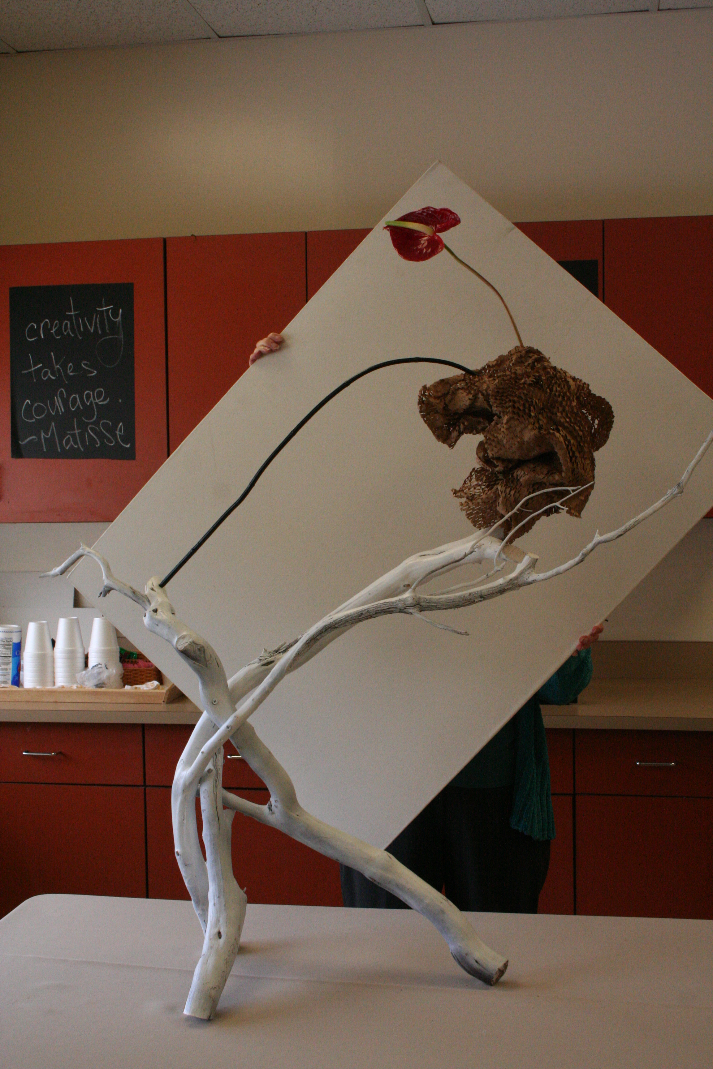 Today I had the pleasure of presenting a hana dome demonstration and workshop for the Ikebana International Alexandria Workshop. After demonstrating three arrangements I worked with the 20 workshop participants learing how to build their own hana dome or flower fixtures with branches and wire. I thought everyone enjoyed the workshop, and I hope they take some inspiration from what they learned and make some pieces on their own. Watching other people do hana dome for the first time helps me learn to teach it more effectively and I gather new ideas as well. Teaching a workshop and learning from it in the process is a big reward!